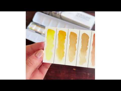 Couleurs incluses : 208 Auréoline, 220 Jaune Indien, 656 Ocre jaune naturel, 667 terre d'ombre naturelle, 653 terre de Sienne transparente, 357 alizarine cramoisie, 365 Vermillon, 351 rouge rubis, 476 Violet, 494 outremer, 492 bleu de Prusse, 483 Azur de cobalt.